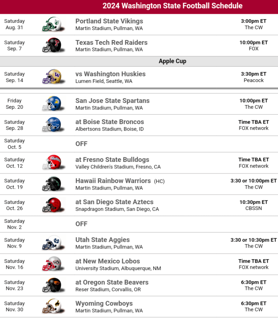How does the 2024 Roster look?: There’s some good and bad here. There’s more experience than you’d expect returning but the Cougs also lost a lot of key guys. QB is going to take some work, their star Cam Ward is gone and it’s been at least a decade since the QB picture has been this murky in Pullman. There’s options though John Mateer has been with the program longer, and has played in certain packages but doesn’t have much starting experience, while Bryant transfer Zevi Eckhaus is a 3-year starter. Mateer is a bigger duel threat while Eckhaus is be the more steady passer. I’d expect Mateer to be involved in some fashion. The receivers will be a strength with Kyle Williams returning to lead the way along with Carlos Hernandez. They lost a couple studs to the portal, but getting Kris Hutson from Oregon is expected to alleviate some of that. To truly answer the question about what happened last season, look no further than the offensive line. It was a massive struggle, Ward had to run for his life and they had zero run game. Thanks to some help with the portal, and guys stepping up there’s some confidence on what the Cougars will have on the interior Oline but tackle is still a big question mark. Washington State was ok defensively last year and especially improved late. They have a great group of linebackers and look promising enough at defensive tackle to defend well against the run. The pass defense is going to be a big question. The Cougars had a really good secondary last year but now 4 key players are gone from that unit. There’s confidence in the replacements but this would still be a good time to figure out the pass rush. Did their pass rush truly struggle, or was the lack of sacks simply a product of how many great Olines they went against last year. Colorado was a shit show when they played them late but they notched 5 sacks in that game. The schedule this year will allow us to figure out if it was the latter.