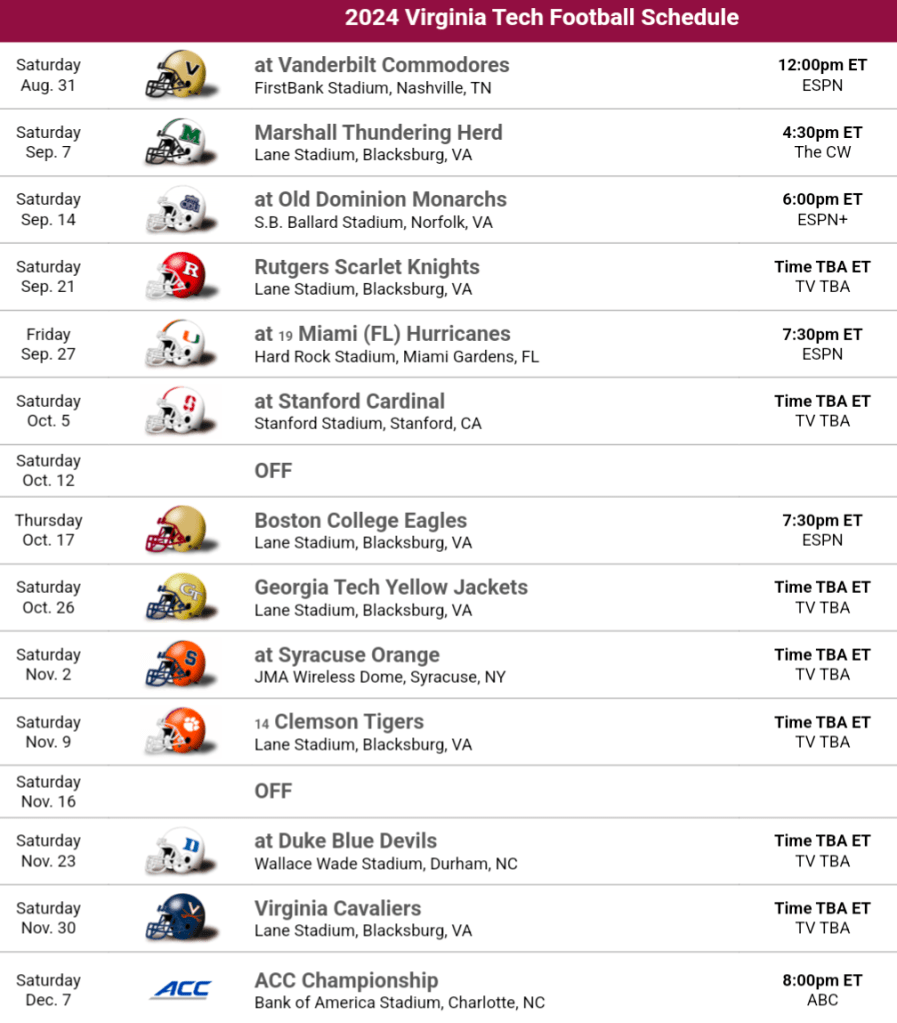 2024 Schedule Thoughts: This schedule is favorable but it’s not without it’s challenges. There’s many points that can trip the Hokies up. They open the season on the road against a revamped Vanderbilt team, and they play Old Dominion on the road, a place that’s been a house of horrors for the Hokies, they’ve yet to win there and lost both in very bizarre games. The home games are grudge matches as both Marshall and Rutgers beat Virginia Tech last season. They avoid a lot of big hitters in ACC play since they don’t have to face Florida State, NC State, and Louisville. It’s a challenging start with back to back road games. Their biggest game will be Clemson but it’s at home, that will be an electric atmosphere with the crowd behind them, but…watch for that trap game at Syracuse the week before. The Hokies ACC hopes hinge on them taking care of business, and maybe some Lane Stadium magic.