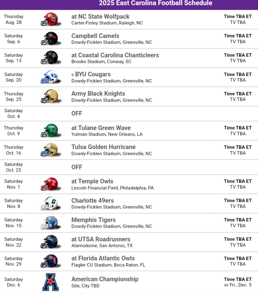 2025 Schedule Thoughts: East Carolina’s schedule has great balance. They have one of the most fun non-conference schedules in the entire country. The Pirates open with in-state rival NC State. Their FCS foe is Campbell who is coming off a rough year but is only an hour and a half away. Then they travel 3 hours down the road to play Coastal Carolina in a first time matchup, and finally they host BYU is an awesome matchup. Their conference schedule is perfectly balanced. The Pirates face 4 contenders and 4 rebuilding programs. The Pirates will face some tough tests but this schedule doesn’t stop them from contending.