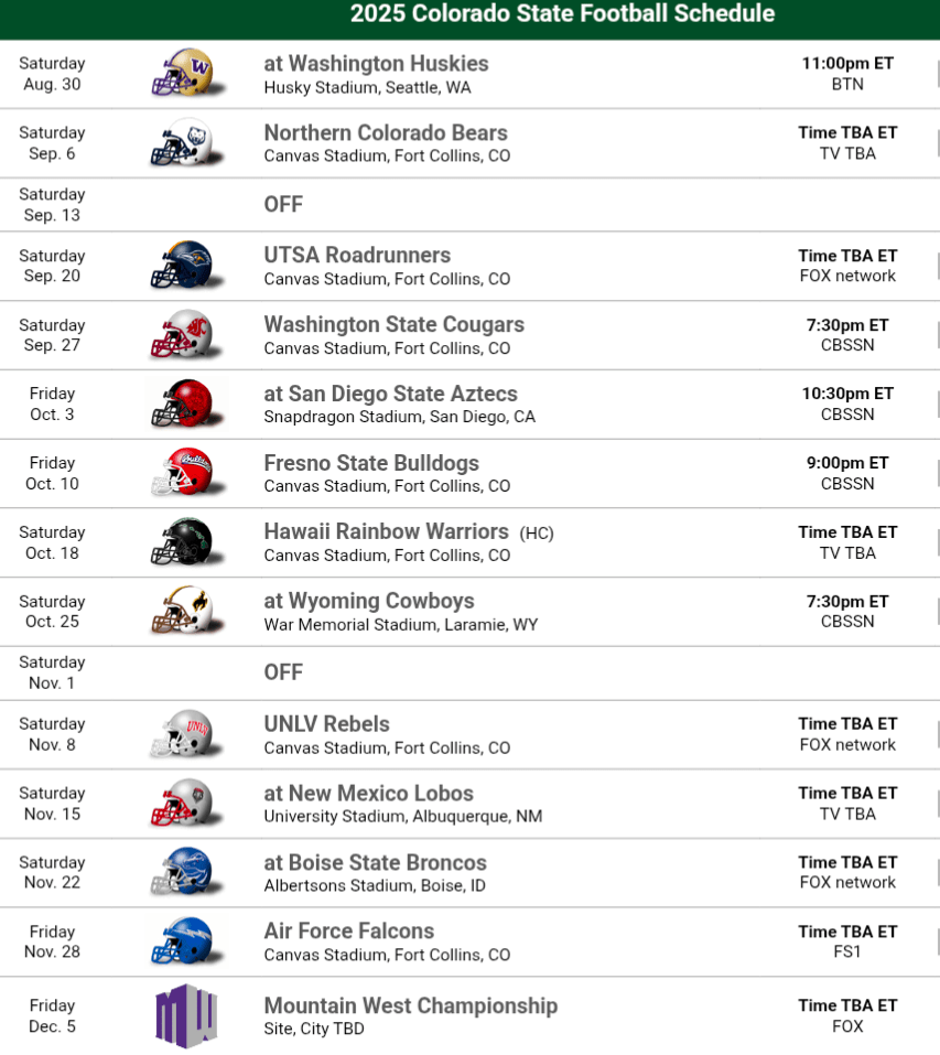 2025 Schedule Thoughts: Colorado State’s schedule is challenging. The Rams have a non-conference slate highlighted by games against Washington, Washington State and UTSA who will all be tough. In-state FCS foe Northern Colorado is coming off a 1 win season so they give the Rams a reprieve. The Mountain West schedule is tougher too, the Rams avoided Boise State and UNLV last year but that is not the case in 2025. They do avoid San Jose State which helps some.